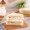 One-bite appetizers with mayonnaise chicken inside and topped with coriander and ketchup are a delightful and flavorful snack option.