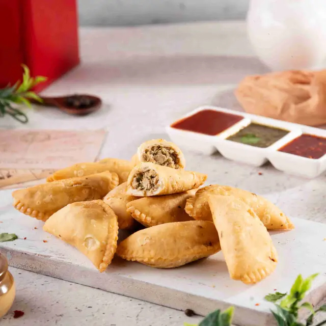 Experience the irresistible combination of tender chicken and delicate pastry in the Chicken Samosa